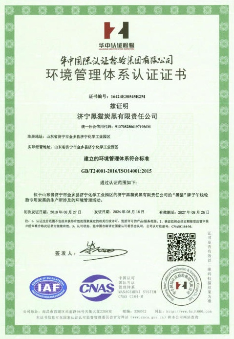 济宁黑猫炭黑有限责任公司资格证书